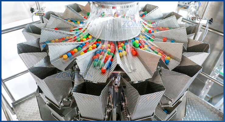 This weighing filling machine is used for packaging granule products into sachets, it is suitable for the medium or large scale production of dried fruit, dried vegetable, meatball etc.This packaging machine can also work with metal detector to realize completed packaging production.