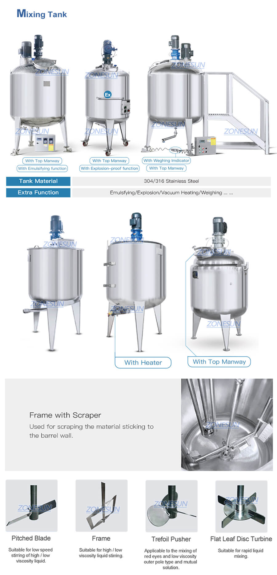 | Optional Functions | Emulsification/Explosion-proof/Vacuum/Weighing and so on |