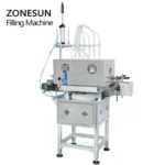This machine is equipped with 316 stainless steel magnetic pump,the bracket makes it can work with vertical automatic capping and labeling machine.There are 6 filling nozzles and each one of them can be controlled separately.The larger flow rate ensures the working speed and help you improve working efficiency.The magnetic pump filling machine has the advantage of high filling accuracy,this machine is widely used in beverage,drinks,cosmetics and daily chemical industries.