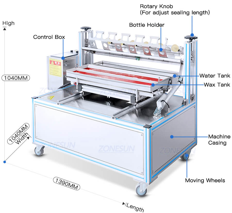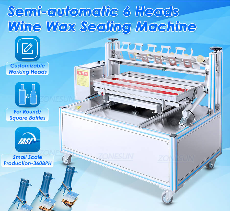 The bottle wax sealing machine is a specialized device designed to automate or simplify the process of applying a wax seal to the tops of bottles, including wine, spirits, and other beverages.