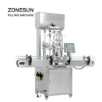 There are several nozzles and customers can control each nozzle separately if they need this.This full automatic liquid filling machine is with conveyor and can be used as one part of production line.These are all help you improve working efficiency greatly.