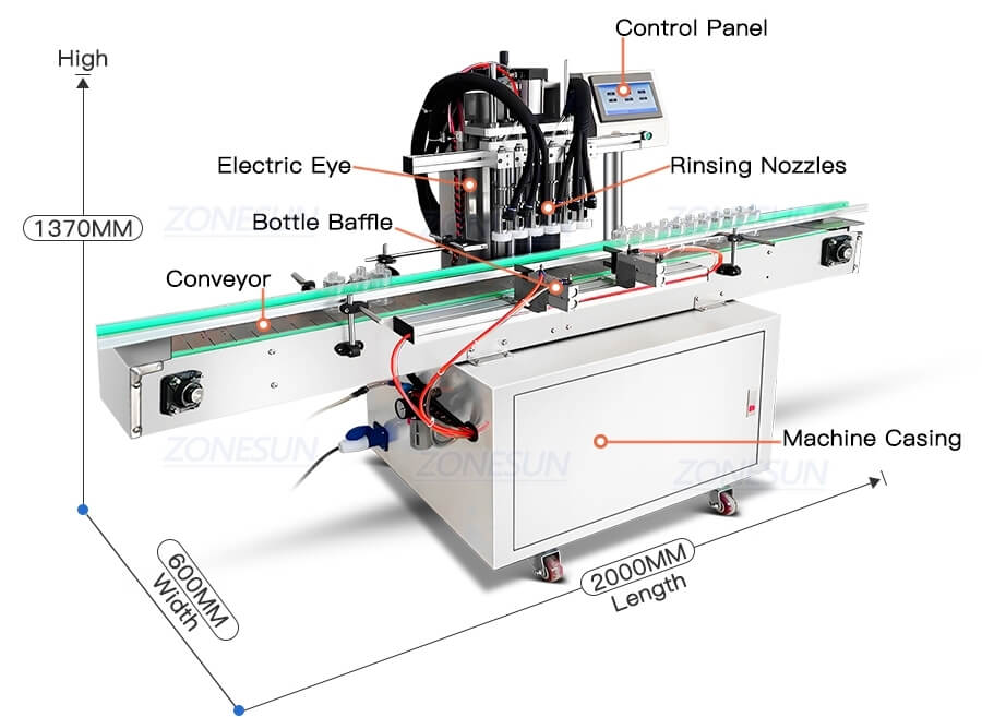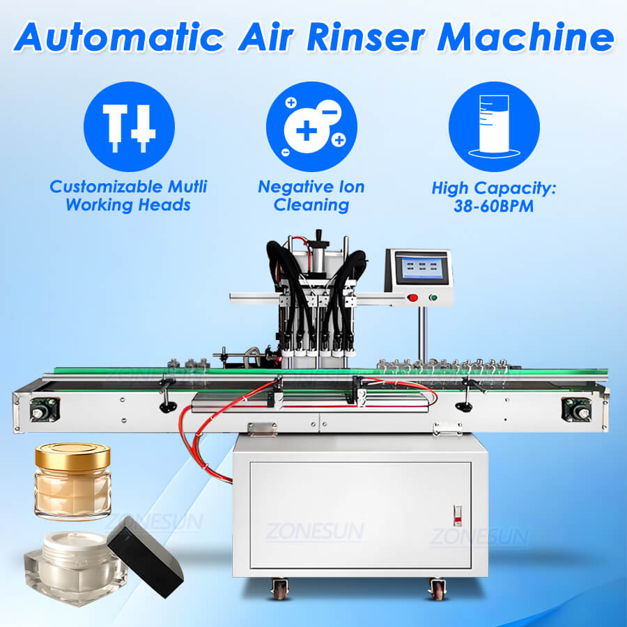This automatic negative ion bottle washing machine uses negative ions (negatively charged ions) to generate a static adsorption effect, removing dust, impurities, and other tiny particles attached to the bottles. This equipment is commonly used in industries such as food, beverages, and cosmetics.