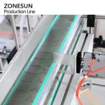 This liquid filling line consists of 10 heads filling machine, stopper pressing, and cap screwing machine. It can simultaneously complete liquid filling, stopper pressing, and cap screwing. It can also be connected to an automatic labeling machine and bottle turntable machine to save labor.