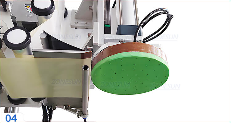 Soft brush smooths the applied labels to enhance adhesion and appearance.