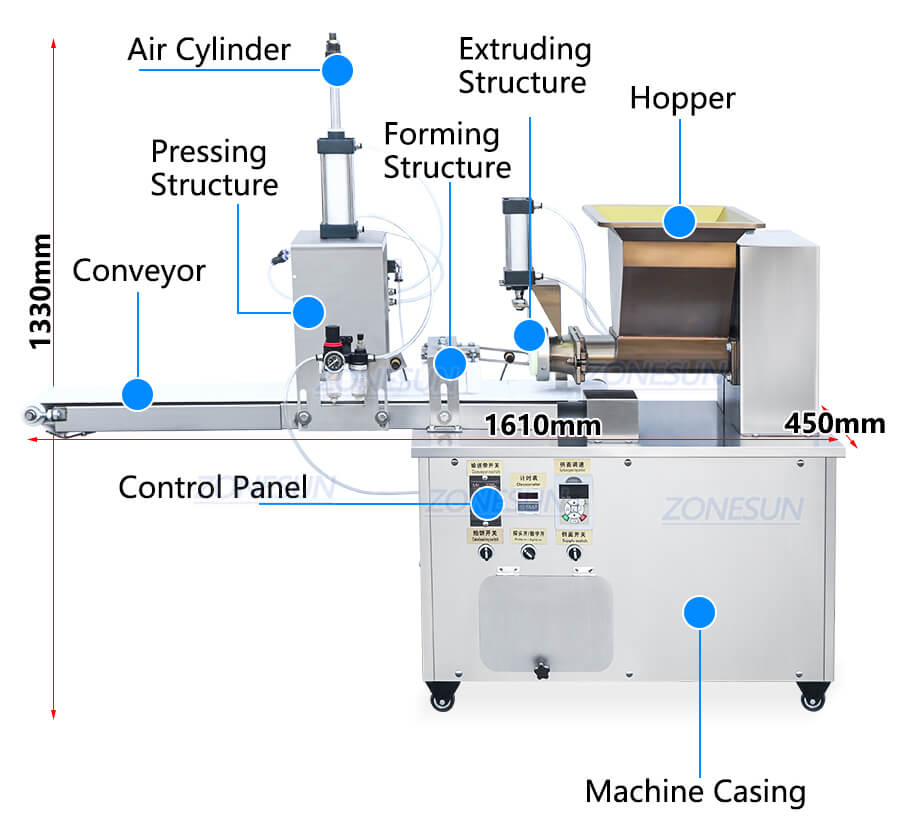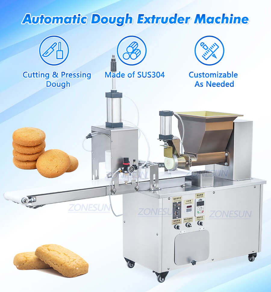 This dough extruder machine is designed to shape dough into specific forms by pushing it through dies or molds. It is customizable based on production need and suits for making cookie, pizza,breadstick etc.