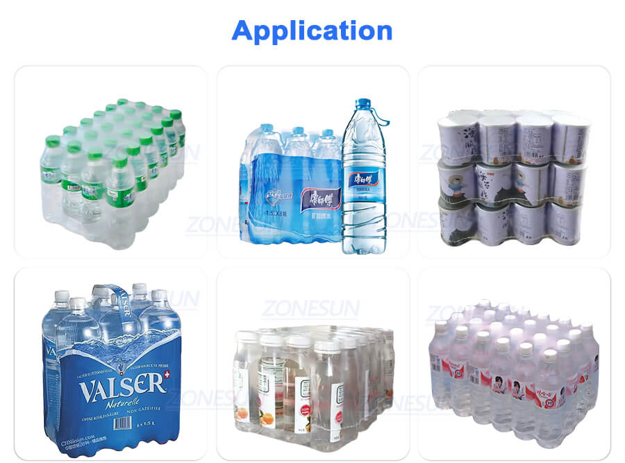 These automatic shrink wrapping machines are ideal for heat-shrinking cans, mineral water bottles, beer bottles, glass bottles, and other beverage containers. They ensure a perfect packaging effect for your items.