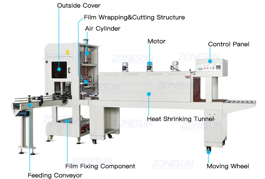The film cutting and wrapping are integrated, and the items are packaged to have a beautiful appearance, cleanliness, dust-proof and moisture-proof, easy to handle and store, greatly reduce product loss, and have the advantage of packaging cost.