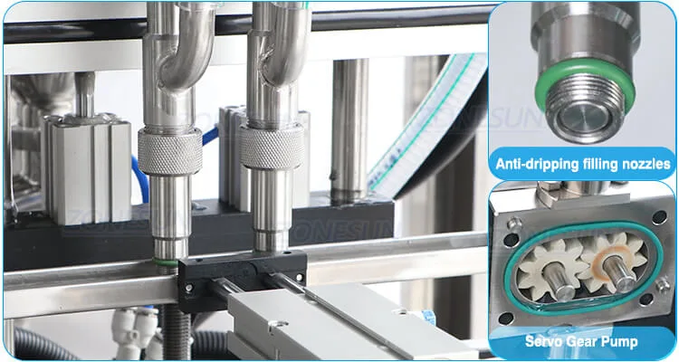 The anti-dripping filling nozzles can minimize product waste, saving costs and using materials.