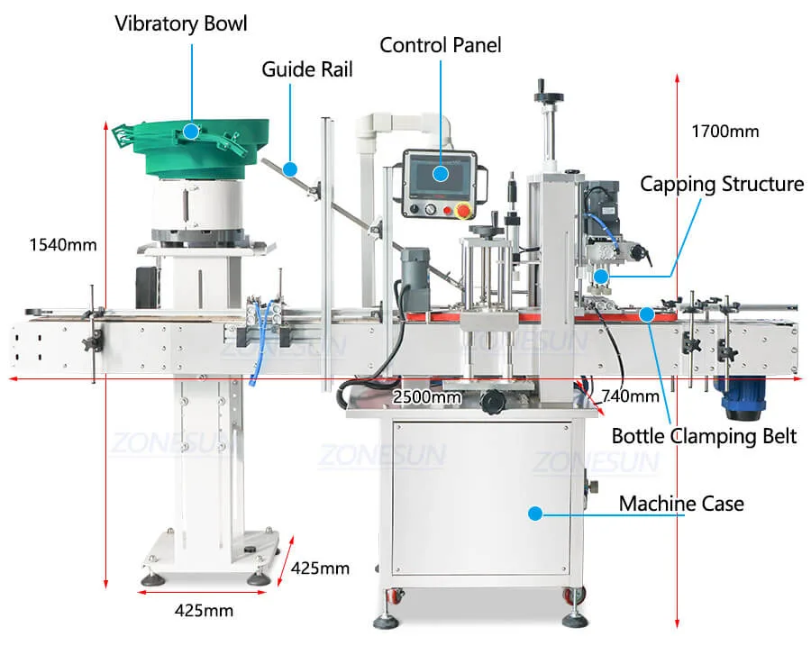 | Machine Size | About 2500*650*1700mm(Capping Machine) About 425*425*1540mm(Vibratory Bowl) |