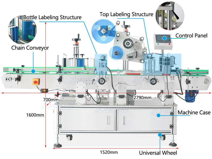 Can attach labels onto bottle body and bottle caps.It can be equipped with date coder to print date.