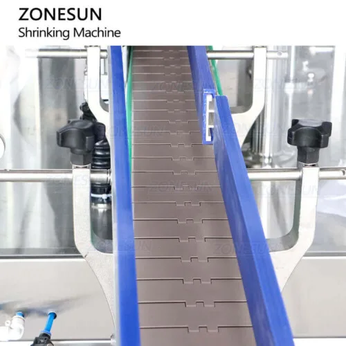 This machine for shrinking tamper evident plastic packaging film for bottle caps,it has the feeding structure to automatically put stopper sleeve onto bottle mouth,this saves working labor.This machine can work with automatic filling,capping and labeling machine to realize automated production.