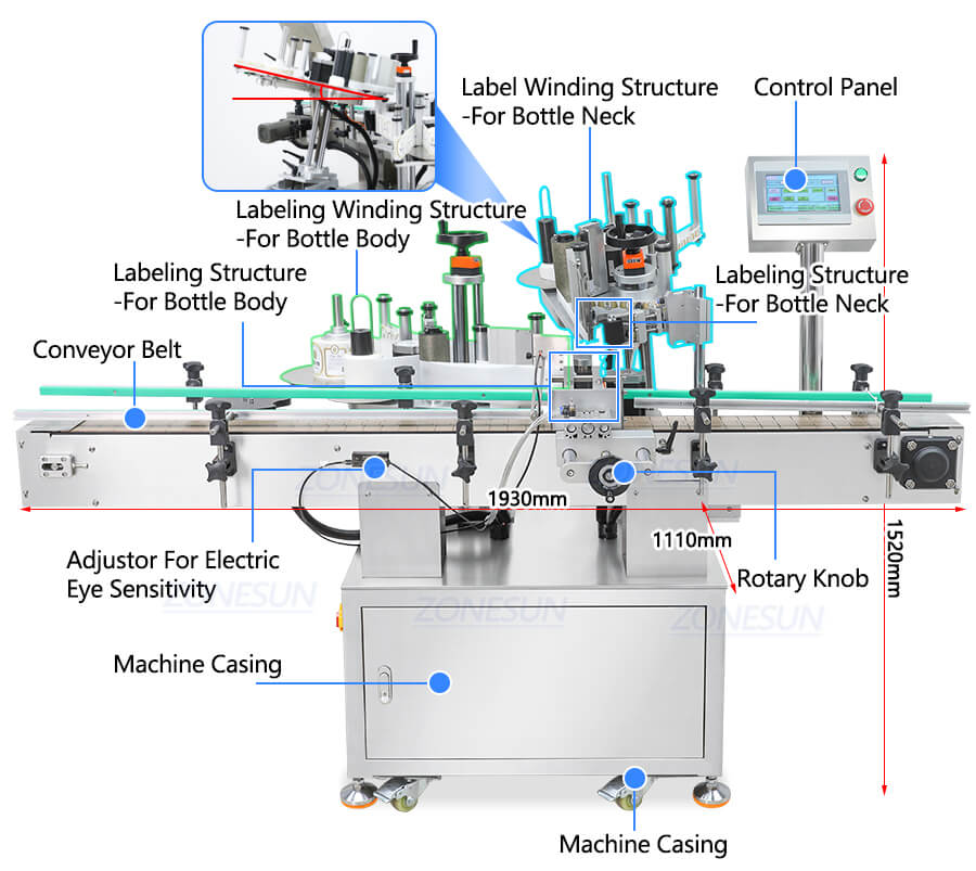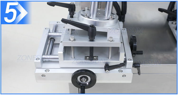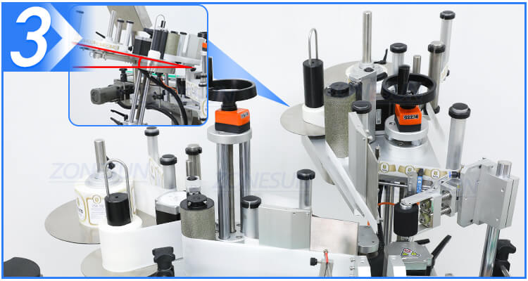 The position of labeling structure can be adjusted in different directions according to bottle size and height through the rotary knob.