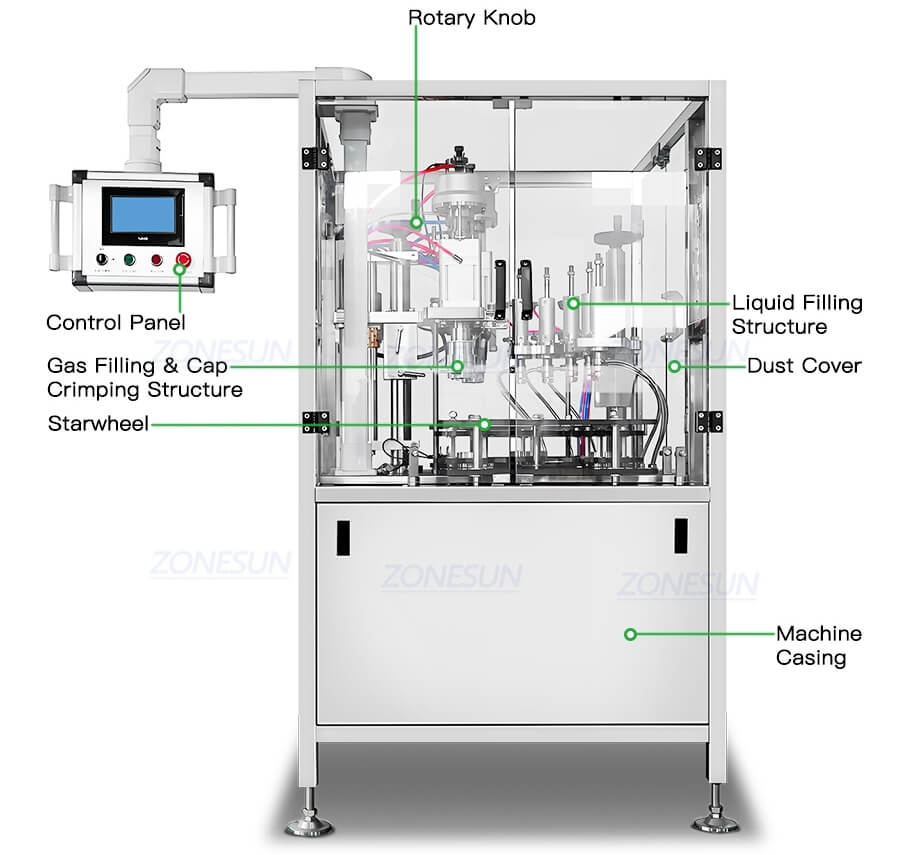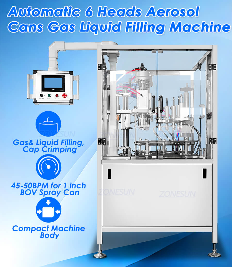 Can finish gas filling, spray cap crimping, liquid filling at the same time