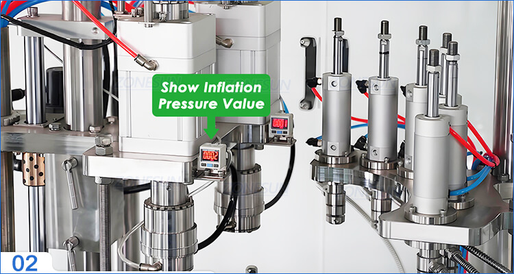 The machine can complete the work process of filling gas, aerosol can sealing, and then filling raw liquid materials. The filling volume and inflation pressure can be adjusted according to production needs. It is suitable for packaging products such as skin toner spray, deodorant, etc.