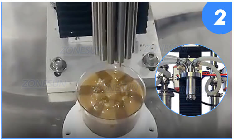 Customized filling nozzles are available for filling special-shaped or layered sauces or paste mixtures.