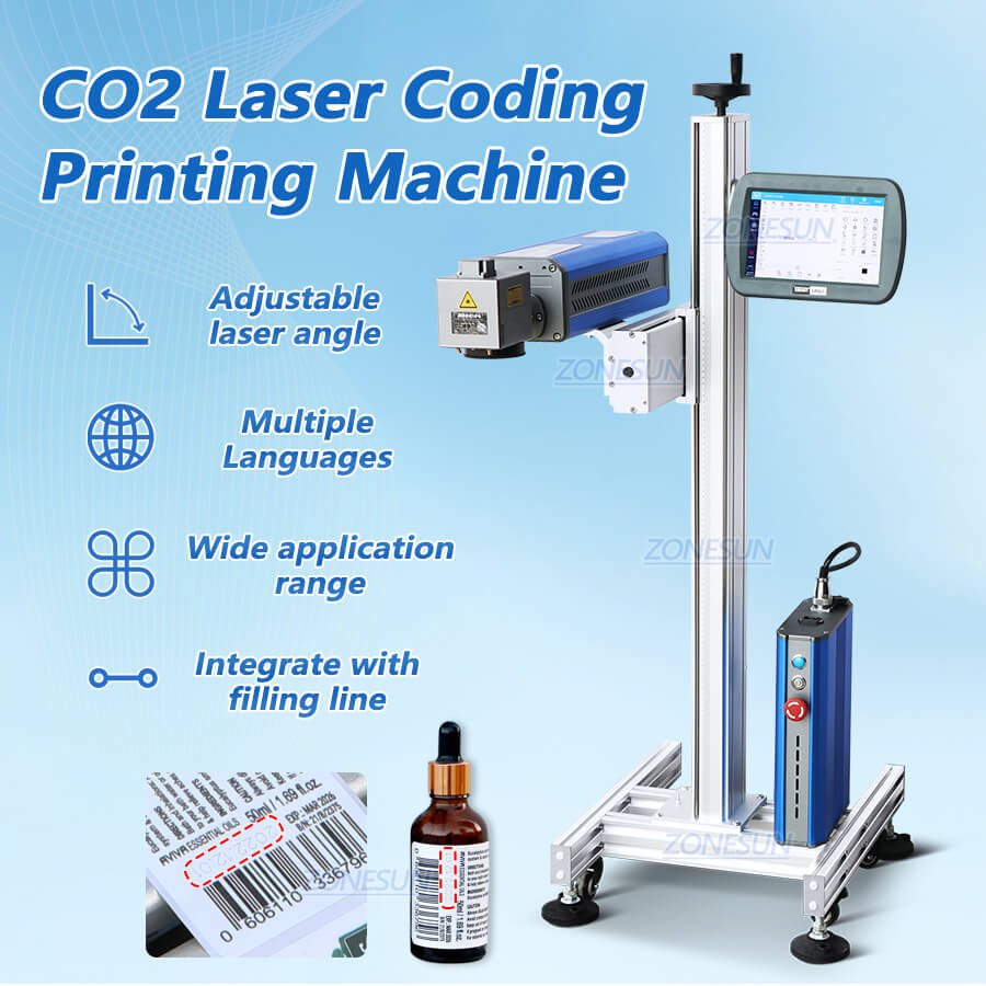 The laser head angle can be easily adjusted, making it versatile for various applications such as lasering simple logos, production dates. It is suitable for a wide range of materials, including plastic, glass, wood, paper, acrylic, and fabric, though not applicable to metal surfaces. This system can be integrated with filling machines, capping machines, or labeling machines to print dates directly onto bottles or labels.