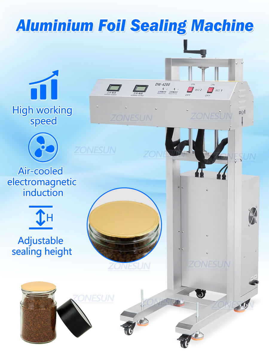 This machine transmits the super-audio current to the sensor component, and the aluminum foil at the bottle mouth under the sensor component is electromagnetically induced to generate a super-audio current. When it reaches the set temperature, the aluminum composite film melts and adheres to the bottle mouth. Efficient and high-quality sealing effect.