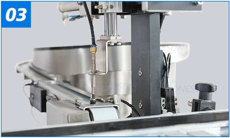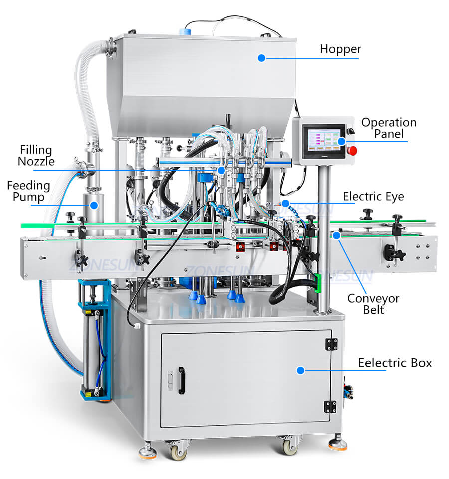 Servo motor controls filling work, filling nozzles are customizable based on production need.