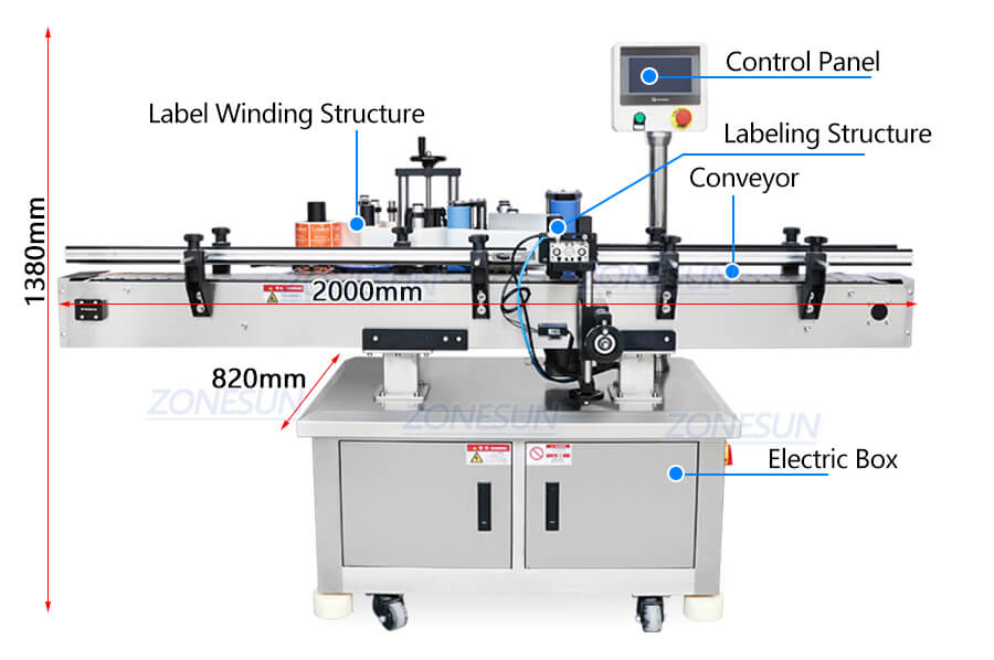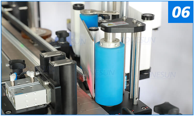 Three roller bar finish labeling work, it suits single side, double sides and wrap-around labeling, can reach 20-50BPM.