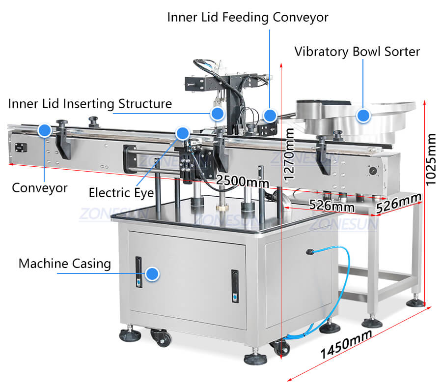 | Machine size | About 2500*1450*1270mm(Main Machine) About 526*526*1025mm(Vibratory Bowl Sorter ) |