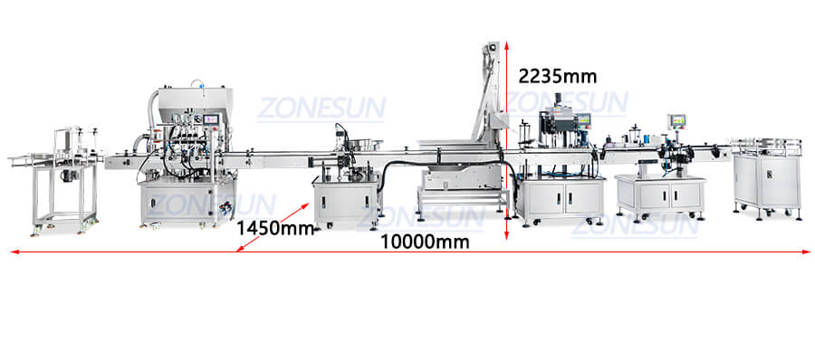 This filling line is consist of bottle turntable machine, servo filling machine, stopper inserting machine, bottle capping machine, label applicator and bottle sorting machine, it is suitable for small & medium scale production of cosmetic cream, ointment, cosmetic serum.