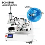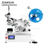 This semi-automatic labeling machine is specifically designed for attaching self-adhesive stickers to the flat surfaces of bottles and boxes. The labeling component features numerous small holes, allowing the label to be securely suctioned onto the product. By simply changing the mold, it can be adapted for flat labeling of various irregular products.
