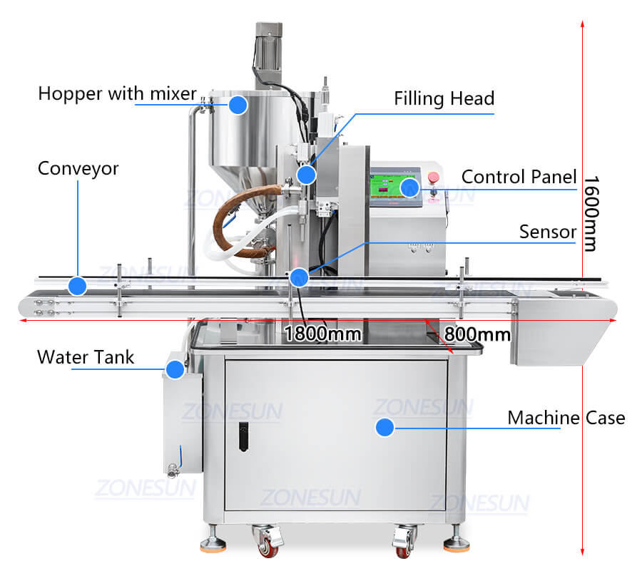 Driven by piston pump, it can fill viscous liquid or paste accurately. Filling range can be customized.