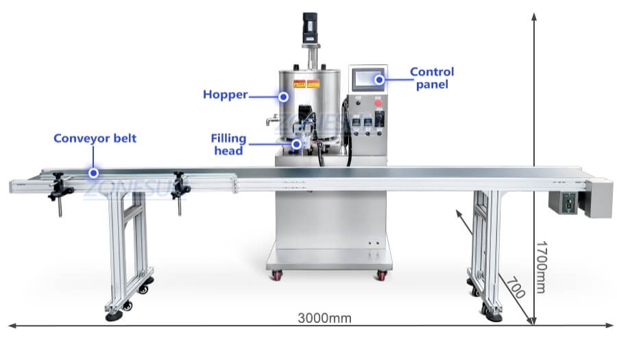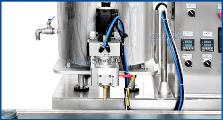 The filling nozzle can keep heated during filling, preventing materials from solidifying and clogging.
