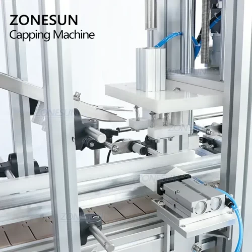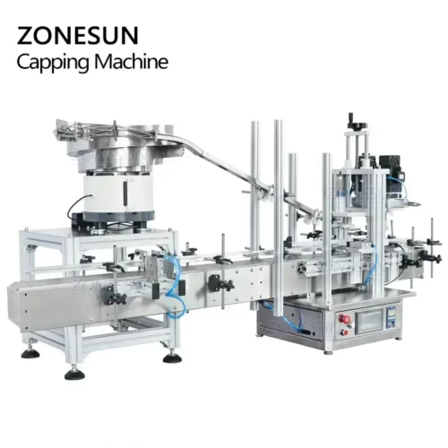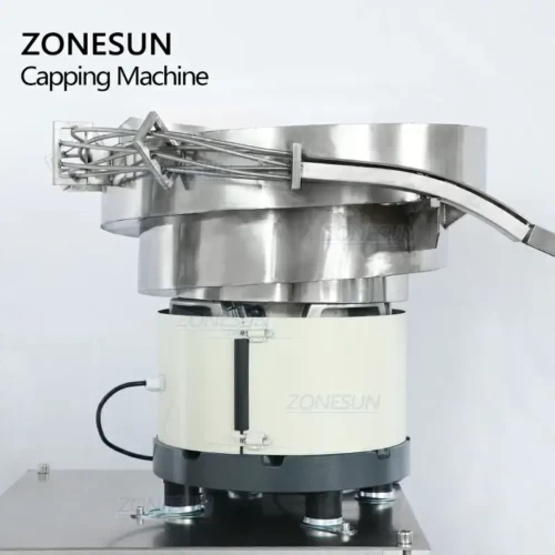 This tabletop automatic capping machine tighten bottle caps by screwing 4 rubber wheels.This kinds of capping method makes it has wider application range.It is suitable for spray bottles,dropper bottles etc.It is equipped with vibratory bowl,which can arrange bottle caps and feed bottle caps automatically,helps you save labor.