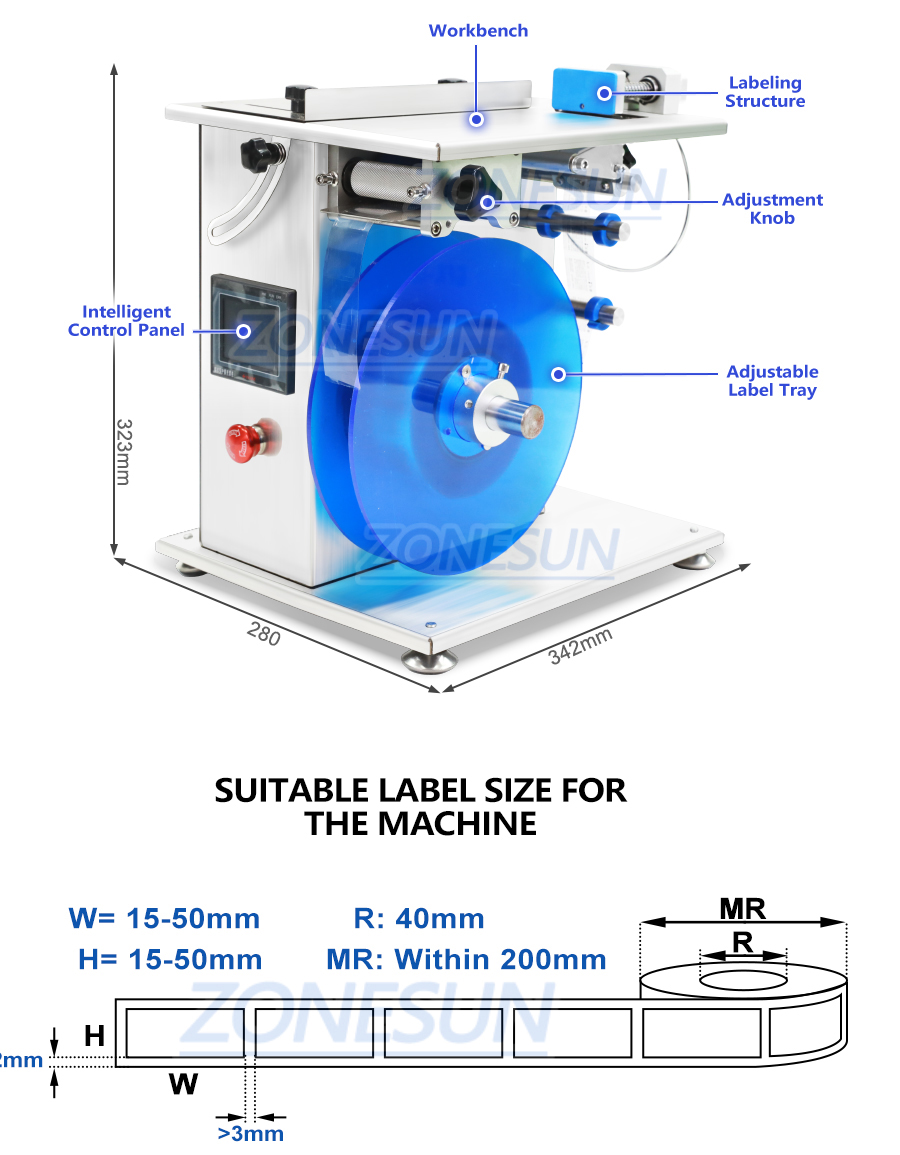 | Appropriate label | Diameter:15-50mm, L15-60mm, W10-50mm |