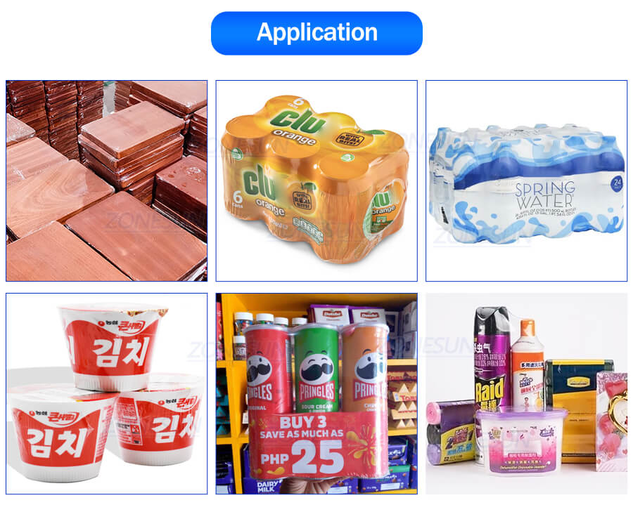 This film shrinking machine is equipped with an air circulation system to ensure even heating of packaged products. The temperature and conveying speed can be adjusted as needed, making it suitable for use in food, drink, and daily chemical industries.