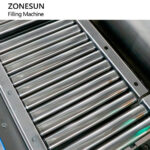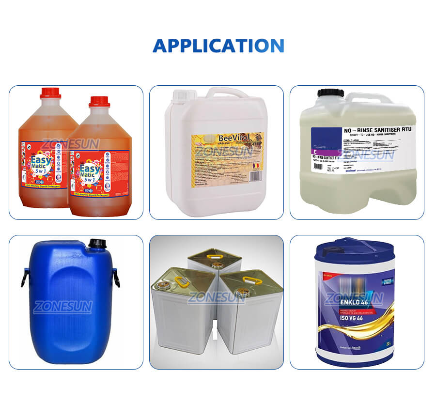 Equipped with diving nozzles to ensures accurate filling of foamy lqiuid. This semi-automatic filling machine has function of weighing, it suits large filling volume, the conveyor belt can help to transport containers to next working production process.