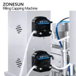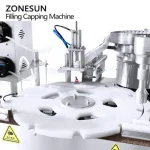 This filling capping machine employs cams, which are mechanical devices with specific profiles, to control the movement and positioning of components. It utilizes continuous motion technology, enabling it to operate at high speeds and increase throughput and productivity compared to intermittent motion machines. It is suitable for filling essential oils, eyedrops, and solvents.