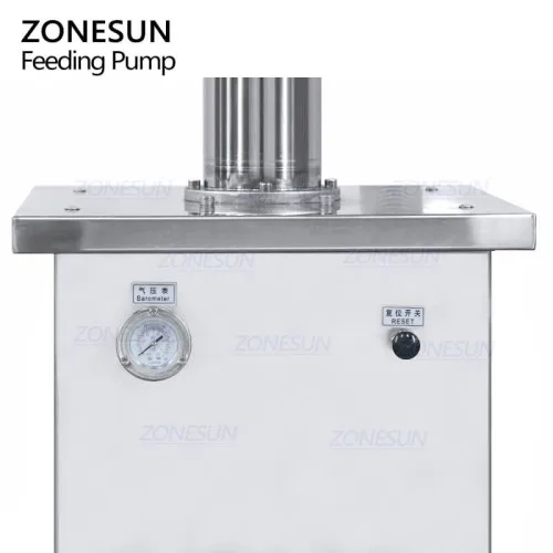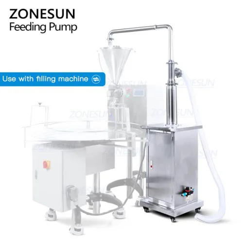 The feeding pump can be utilized with an automatic filling machine to preload materials before the filling process, thereby reducing production labor.