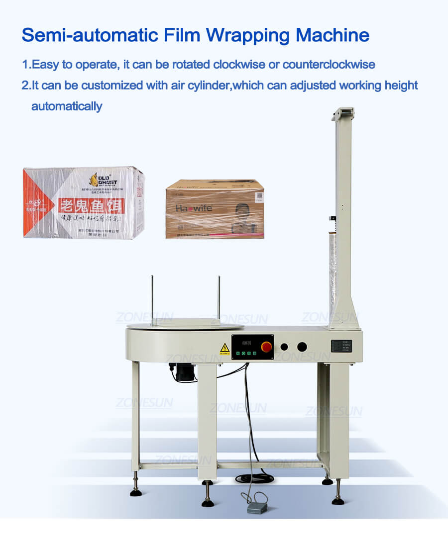 The film wrapping machine is used for the packaging requirements of cargo collection,storage, transportation and mechanized loading and unloading operations.It can improve packaging efficiency and prevent goods from being damaged during handling.And play the role of dust,moisture and cleaning.