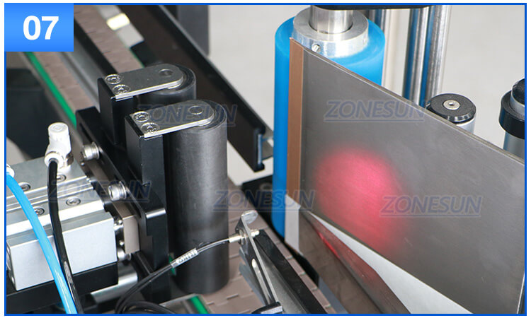 Use three rollers to stick labels on bottles, it suits single side, double sides and wrap-around labeling.