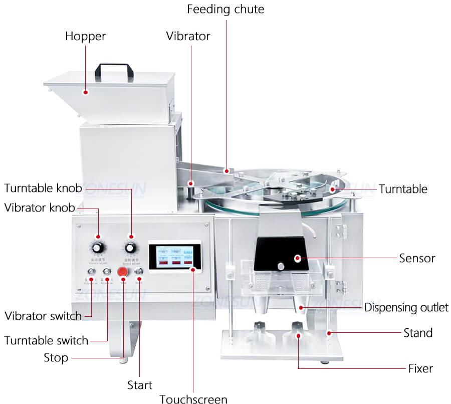 The machine features a well-designed hopper and vibration system that ensures smooth and efficient material flow. The hopper is designed to accommodate various capsule sizes and shapes, while the vibration system gently guides the capsules onto the turntable for accurate sorting and counting.