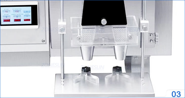 The machine features two discharge ports, allowing for continuous filling of multiple bottles. This design significantly increases productivity and efficiency, especially when dealing with large production batches.