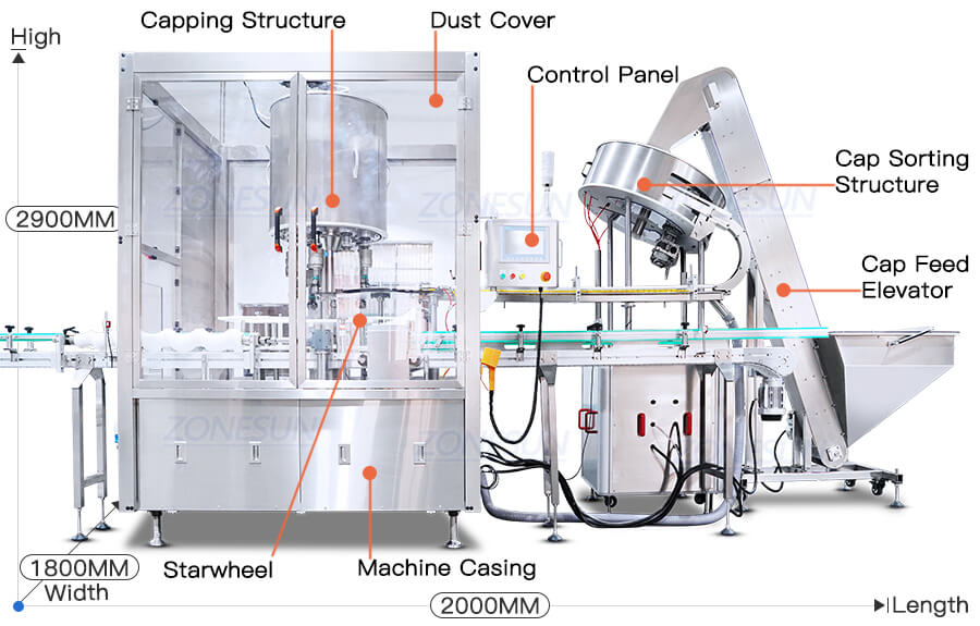 Suits regular round caps, it can arrange caps be in order and convey caps to the capping structure in time.