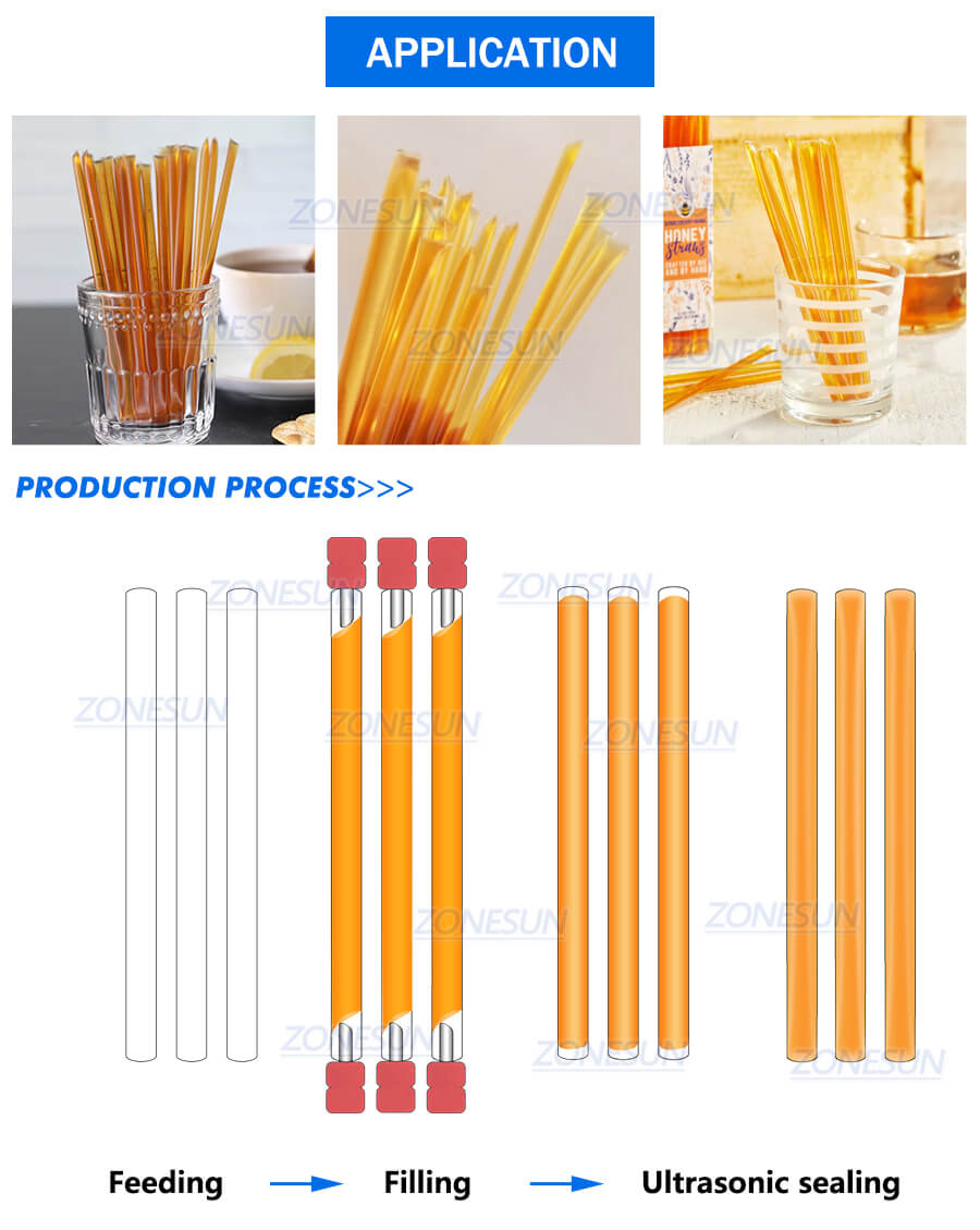 Adopting ultrasonic sealing method, it can seal honey straws firmly and beautifully.