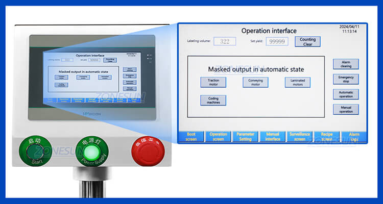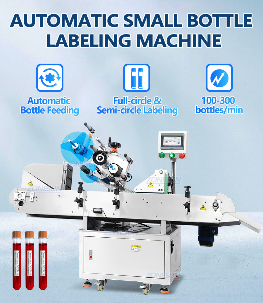 This machine is suitable for labeling sticker on cylinder which are hard to stand up.The horizontal transmission and labeling can help to improve labeling accuracy and working efficiency.This machine can be equipped with a date coder which can be used to code production date and production number.