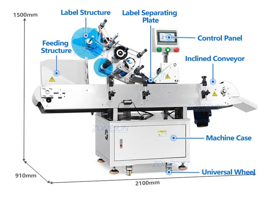 The working height of labeling structure can be adjusted according to product size.