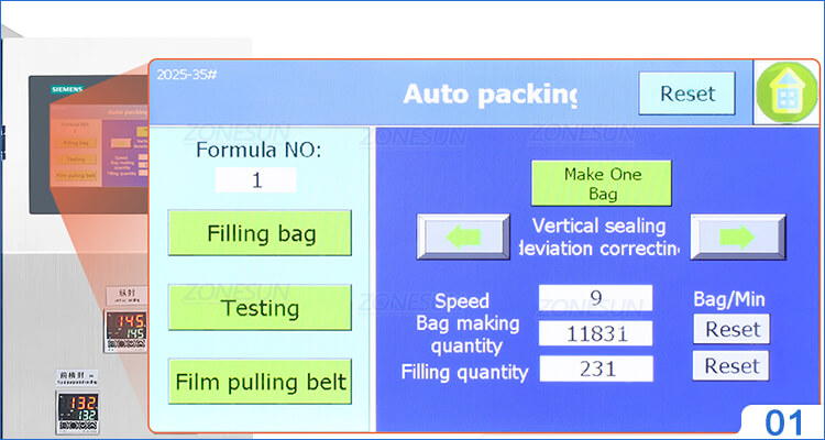Allows temperature adjustment based on film materials, it supports customizable sealing types such as three-side seal and four-side seal.