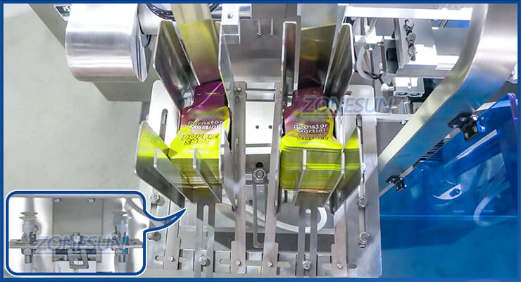 Can be adjusted according to pouch size, using suctions cups to pass premade pouches to next working process.
