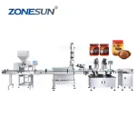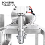 This filling line is used to fill meat sauce into glass jar and tighten the twist off metal caps automatically. The bottling work is controlled by the rotor pump, which can ensure the minced meat will be bottled smoothly, and meat will be not easily left in the machine.