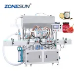 Controlled by servo motor,this 6 heads piston pump filler has high filling accuracy and can set filling volume by intuitive value.Equipped with hot water circulation system,ensure filling material can be filled in constant temperature,it is suitable for filling chocolate jam,hot sauce,jam etc.