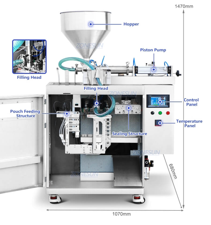 Driven by piston pump, it can fill viscous liquid or paste. Filling range is customized.