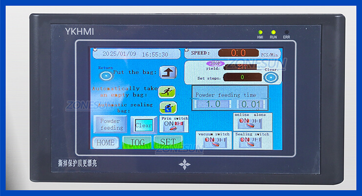 Touch screen panel makes it convenient to adjust working parameters. Language of panel can be customized.