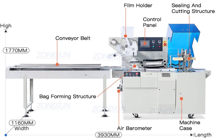 You can customize the cutting length, sealing temperature, and sealing time based on the specific packaging film you’re using.