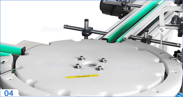 Interchangeable star wheel design to fit various bottle sizes and shapes.
